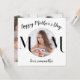 Personalize esta placa de Dia de as mães de tendência com suas fotos e seu nome. Placa de Dia de as mães branca e preto simples, mas na moda com tipografia elegante de script, incluindo uma foto personalizada esboçada em um círculo preto fino como a letra O na sua mãe na frente e uma colagem de 4 fotos com um coração de chic no centro na parte traseira.