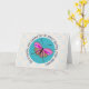 Cartão de Saudação à Enfermeira Aposentada, "Como enfermeira que você se importava durante sua carreira, agora é hora de fazer todas as coisas que você gosta, feliz aposentadoria". Bolinhas azuis-claras e natas com centro azul-lacrimogêneo e borboleta desenhada pelo artista.