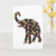 Este design de carta de boas-vindas homenageia o elefante, uma das criaturas mais inteligentes do mundo (mais inteligente que o homem mas o vamos encara isso que não é difícil!). Este elefante em particular tem uma reviravolta hippie, com círculos psicodélicos ultra coloridos a fazer do seu padrão hipnótico.