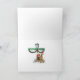 Airedale Terrier vestida de vermelho de Natal e vestindo uma poses de Papai Noel com uma estrela de Natal dourada e traz uma mensagem de feriado de saudações de época durante os feriados de Natal.