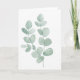Pintura em aquarela de folhas de eucalipto adorna a frente deste cartão, que é em branco no interior para permitir que seus próprios sentimentos pessoais sejam adicionados.
