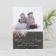 Placa de cartões de natal chic flat style, com sua foto personalizada, na metade superior da placa e bolinhas rosa gold bonito decorando a metade inferior da cinza de carvão. Gráficos de dois flocos de neve bonito rosa-dourados e texto gráfico rosa-dourado lendo Feliz Natal, decoram a frente da placa. Personalize o texto branco, na parte inferior da frente, para adequá-lo às suas necessidades de cartões de férias. Personalize para adicionar texto, no verso. Foto de exemplo cortesia de Lorri Lang.