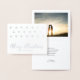 Celebre a temporada com este cartão de Natal de folha de prata na moda! Este design apresenta gráficos animados de férias com uma letra de chic script " Feliz Natal ". O dentro é projetado com modelo de foto e uma mensagem personalizada.
