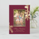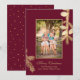 Cartão de saudação de fotos festivas feitas em vermelho de baga profundo, com gráficos de galhos de pinheiro dourado e cones de pinho. Personalize com sua fotografia e mensagem para uma maneira adorável de enviar suas saudações nesta temporada de festas.