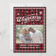 Padrão de xadrez de búfalos vermelhos e escolha de fontes para estes bonitos cartões de saudação de fotos de Natal que são um retorno para o ano passado.