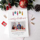 Este convite de Natal Colorido e divertido com a foto da sua família e Enfeites de natal de cor d'água pintada manualmente é uma maneira alegre de enviar saudações para amigos e familiares para os feriados Personalizar usando as caixas "Editar este modelo design" no lado direito do item, ou clique no botão azul "Personalizar" para organizar o texto, alterar as fontes e as cores.