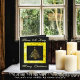 Este ornamentado, um cartão gráfico de saudação, é de uma árvore de Natal digitalizada, rolada, em ouro dourado, exibido sobre preto, fundo e emoldurado em um padrão simulado, gravado com Cartões de natal dourados, em dourado com script, tipo de letra.