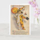 Saudações de Halloween! Cartão vitoriano / ventiço / Retro Halloween. Criança em fantasia de harlequin.
