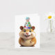 Uma foto bonita de um hamster sorridente vestindo um chapéu de festa, é mostrada neste cartão de saudação de aniversário para um macho. O dentro de cartas diz: "Ei, cara, é hora de festejar. Feliz aniversário"! Um cartão incrível para mandar para um macho para seu dia especial!