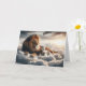 Leão e borrego no céu com cartão de saudação de nuvens.