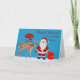 Um guaxinim adorável pendurado na parte de trás de uma rena vermelha reclamando para o Papai Noel