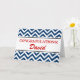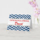 Cartão de saudação de parabéns personalizados | padrão zigzag chevron Cartão de saudação vermelho e azul com nome personalizado e desejos parabéns. Surpreenda amigos e família com este design personalizável. Cores editáveis. Para homens e mulheres. Excelente para novos empregos, graduações, promoções, noivados e aposentadorias.