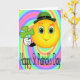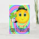 Um amarelo segurando um trevo de quatro folhas desejando um Dia de São Patrício feliz