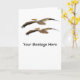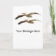 Um modelo para sua mensagem é exibido abaixo de 2 Pelicanos brancos americanos voando em formação. Personalize para adicionar a sua própria saudação de dentro ou altere as cores de fundo.