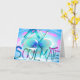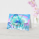 Meu cartão de saudação da Alma Mate com artesanato de arte azul e rosa como formas no fundo.
