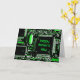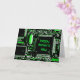 Design moderno com um fecho de um conselho de circuito de computador em verde e preto. Cartão de saudação com um design personalizável para você personalizar com seu próprio texto, imagens e ideias. O texto pode ser facilmente alterado usando o modelo fornecido ou clique no botão 'Personalizar o texto' para fazer outras alterações. Criado com uma fotografia original e técnicas digitais por Jess Perry.