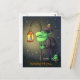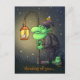 Um gnomo amigável está segurando uma lâmpada, com olhos fechados e sorrindo.provavelmente ele está pensando em algo agradável.A lâmpada espalha uma luz quente sobre a face dos gnomos.Em seu chapéu, ele senta um pequeno inseto fofo olhando à luz da vela.E em seu calçado está um pequeno gnomo verde, muito confortável, sorrindo para o espectador. Direitos autorais tradicionais e digitais de hauke vagt