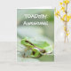 Cartão de saudação de um sapo verde de árvore, sentado sobre folhas com o texto: TOADally Adwmanutenção. Você pode enviar este cartão para felicitar alguém por uma conquista ou um aniversário.