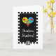 Esta design única judia de uma estrela colorida de David, dividida por duas flores dentro de um coração sobre um fundo preto é refrescantemente simples. Cartão interior fechado e coordenado para o seu prazer escrevendo. ~ karyn
