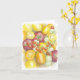 Cartão de saudação dobrado com a cor de água reproduzida original de uma variedade de tomates. Mensagem de vazio.