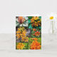 Cartão de saudação dobrado com colagem de fotos de flores silvestres laranja. Mensagem de vazio.