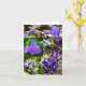 Cartão de saudação dobrado com colagem de flores silvestres roxas. Mensagem de vazio.