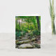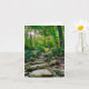 Cartão de saudação dobrado com foto de caminho da floresta/escada de pedra. Mensagem de vazio.