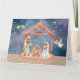Cartão de Natal dobrado com uma cena de Natividade de cor d'água na frente, com um dentro de espaço de vazio para uma mensagem pessoal.