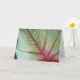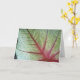 As folhas coloridas do Caládio vêm em diferentes tons e espécies. As veias vermelhas brilhantes da folha contrastam de forma impressionante com o verde do seu corpo. Esta planta cresce durante todo o ano em climas quentes, mas as suas cores lembram o outono. Este cartão é apropriado para muitas ocasiões e eventos importantes para a vida, desde o aniversário até a graduação, ao casamento, aniversário, simpatia e amizade. A dentro do cartão dobrado é vazio para você escrever suas mensagens pessoais.