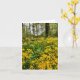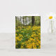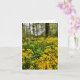 Cartão de saudação dobrado com foto de floresta e flores silvestres amarelas. Mensagem de vazio.