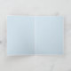 Cartão de saudação dobrado com mãos de oração com fundo azul abstrato. Dentro é azul bebê, vazio esquerdo para sua mensagem motivacional e imagens. Vem em tamanho pequeno e padrão.
