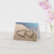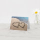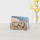 Bela e original foto profissional de dois corações escritos na areia ao longo da água azul do oceano para significar amor e romance. Ótimo conceito para um próximo casamento de verão, aniversário, Dia dos Namorados, ou qualquer momento para dizer "Eu Te Amo". Personalize o interior ou exclua o texto de exemplo para escrever suas próprias palavras personalizadas e personalizadas mais tarde. Agradável para namorada ou namorado, querido(a), esposa ou marido!