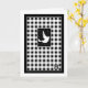 Este cartão elegante apresenta uma pomba branca num céu preto nevado sobre xadrez de búfalo preto e branco. O cartão interior contém uma fronteira de xadrez coordenada para o seu prazer escrevendo e diz "Pensando em você" em letras vermelhas atraentes. ~ karyn