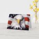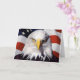 Cartão comemorativo mostrado com uma impressão de foto de uma águia patriótica. Dentro do vazio, Personalize esta placa e adicione sua própria mensagem ou comprar especial como está. Imagem do stock