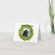 Entusiasmo de Férias. A antecipação do Natal é empolgante. O gato preto está procurando pela janela, enquadrado por uma coroa verde. O texto na frente diz "Papais noeis estão chegando", Dentro diz "Nós mal podemos esperar" em texto preto e "Felizes feriados para você!" em texto vermelho.