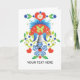 Imagens estilizadas, de Mod e Folksy em um cartão de saudação para todas as ocasiões. Uma vinheta com aves folclóricas, cravos, margaridas, borboletas e corações para um bonito olhar folclórico sobre um fundo branco de neve. Personalize o cobrir e o interior da sua mensagem ou sentimento personalizados.