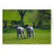 Cartão de saudação fotográfico com dois cordeiros jovens num campo que evidentemente mostra interesse por algo. O dentro é vazio para sua própria mensagem.