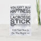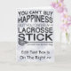 Personalizado fez cartões de saudação e convites com um design de engrenagens originais. Fácil de editar modelos, texto frontal e texto dentro pode ser alterado para o que você quiser! Excelente para toda a sua família e amigos doidos. Engraçado design de lacrosse, o texto diz: Você não pode Comprar a Felicidade. Mas você pode Comprar um bastão de Lacrosse e isso é a mesma coisa. Grande excelente design para camisetas e capuzes!