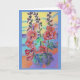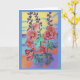 Hollyhocks alegres cumprimentarão o destinatário sortudo deste cartão bonito. Estas flores alegres trazem um sorriso pelo puro prazer de sua beleza. Teve uma festejação piquenique na beira da água? Anuncie a festa aos seus convidados personalizando a dentro do cartão com sua própria mensagem!