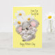 Para Dia de as mães, este cartão apresenta uma mãe koala e seus dois bebês. O texto, na frente, pode ser personalizado. Na dentro, há uma área para você adicionar seu próprio texto.