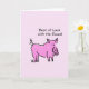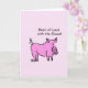 Cartão de Saudação - Melhor Sorte com os Exames! No porco rosa da frente sobre fundo rosa e dentro de vazio.