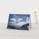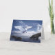 Cavalo de Pegasus branco voando em cartão de saudação de paisagem mística