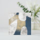 Uma grande forma de abstrato em cobrir azuis marinho a borda da canvas com recortes revelando um fundo branco texturizado. Uma área bege texturizada vestida fica sobre a forma azul enquanto as linhas brancas se torcem como corda em um acabamento dinâmico até a peça.