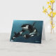 Dê este cartão de baleia Orca ao amante de baleias na sua vida! Orgulho e Joy mostram uma baleia Orca mãe com seus dois bezerros, Orgulho e Alegria, debaixo da água. Direitos autorais do trabalho de arte © Michaeline McDonald.
