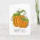 Enviem saudações de outono com este cartão temático de abóbora! O cartão apresenta uma ilustração desenhada manualmente de um par de abóboras laranja claras e chocadas com curlices verdes. A mensagem "Happy Fall" está escrita abaixo. A placa está no vazio.
