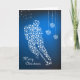 Feliz jogador de hóquei de Natal. Um cartão de Natal para o jogador de hóquei ou fã na sua vida. Este design apresenta um céu azul noturno com flocos de neve brancos moldando a silhueta de um jogador de hóquei. Feliz Natal está na letra de um roteiro.