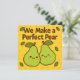Celebre uma doce conexão com este adorável cartão de saudação "Fazemos uma pera perfeita"! Apresentando uma feliz dupla de pera sobre um fundo amarelo alegre, este trocadilho lúgubre é perfeito para aniversários, amizades ou qualquer pessoa que torne a vida um pouco mais brilhante. Excelente para aniversários, notas obrigado ou só porque.