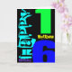 Cartão de saudação personalizável de 16º aniversário com grande número (idade) e nome em cores azul e verde. Você pode facilmente alterar o texto (cor, fonte, tamanho e posição) clicando no botão personalizar. Estão disponíveis outros modelos.