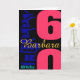 Cartão de Saudação de 60.º Aniversário personalizável com grande número (idade) e nome em cor rosa, azul escuro, amarelo-dourado e mint. Você pode facilmente alterar o texto (cor, fonte, tamanho e posição) clicando no botão personalizar. Estão disponíveis outros modelos. Correspondente ao 60º Aniversário do Livro de Convidados.
