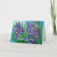 A pintura de arte moderna de um jardim cheio de iretos roxos. O texto diz "Felz pascoa", mas pode ser personalizado com sua própria mensagem de cartão de saudação personalizada.